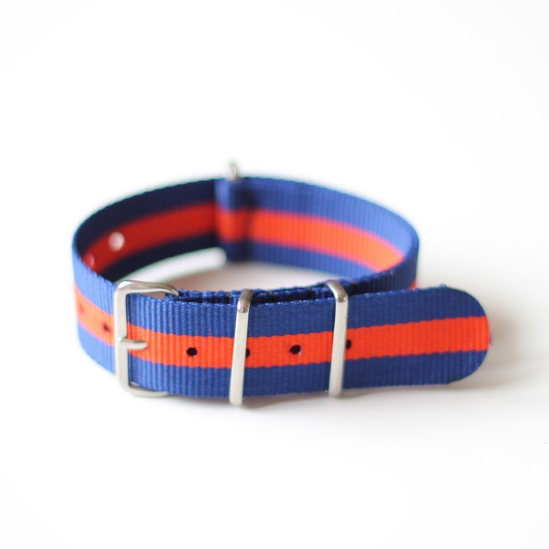 Ge din klocka ett sportigt och självsäkert uttryck med detta NATO-band i blått och rött – en klassisk färgkombination som aldrig går ur tiden.